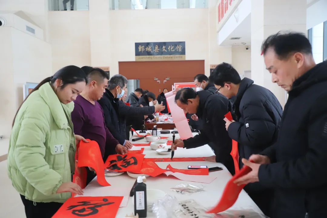 此次活動(dòng)還特別設(shè)置了向群眾送春聯(lián)、送木板年畫暖心環(huán)節(jié)。鄄城書法家們揮毫潑墨,筆鋒游走間,一副副飽含美好祝福的春聯(lián)躍然紙上。