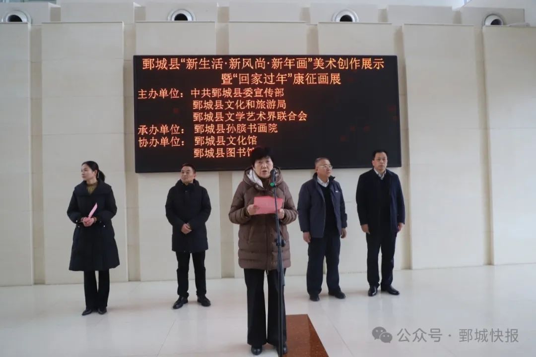 為進(jìn)一步推動(dòng)中華優(yōu)秀傳統(tǒng)文化創(chuàng)造性轉(zhuǎn)化、創(chuàng)新性發(fā)展,豐富人民群眾精神文化生活。1月24日,由鄄城縣委宣傳部、縣文化和旅游局、縣文聯(lián)主辦的“新生活·新風(fēng)尚·新年畫”美術(shù)創(chuàng)作展示暨“回家過(guò)年”康征畫展活動(dòng)在縣文化中心舉行。市文化和旅游局一級(jí)調(diào)研員李松,縣委常委、宣傳部部長(zhǎng)李沉靜,縣文化和旅游局黨組書記王棟梁,縣委宣傳部副部長(zhǎng)王楠,縣文化和旅游局黨組成員、副局長(zhǎng)朱文喜參加活動(dòng)。