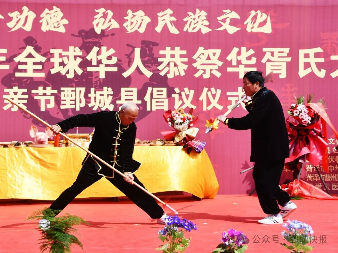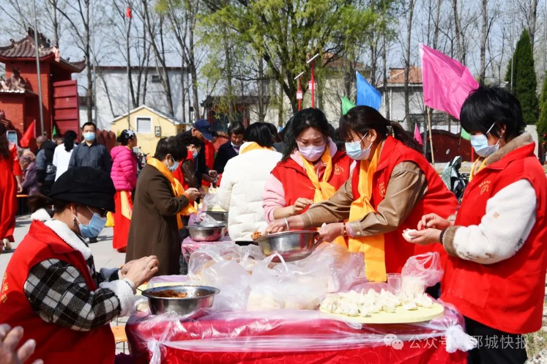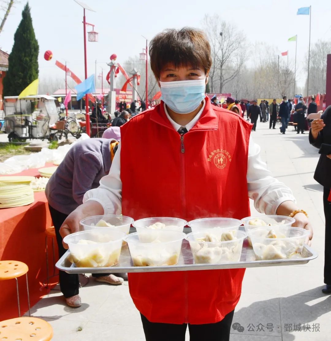 義診中,醫護人員耐心地為群眾量血壓、測血糖,并耐心解答各類健康問題,將健康送到群眾“家門口”。包餃子現場更是熱鬧非凡,暖意融融。志愿者們分工明確,有條不紊地調餡、搟皮、包餃子。不久,熱氣騰騰的餃子陸續出鍋,志愿者們將一碗碗餃子送到現場老人手中。裊裊升騰的熱火氣里,不僅承載著餃子的溫度,更傳遞出孝老愛親的中華傳統美德。鏗鏘有力的鼓聲拉開了恭祭華胥氏大典帷幕。從朗誦《華胥頌》、省級非物質文化遺產擔經舞表演、“九獻禮”、敬獻花籃、恭頌祭文等環節,展現出后人對華夏文明根脈的銘記與傳承。中華民族有著重視親情、感恩母親的優良傳統,活動最后,參祭人員紛紛在中華母親節倡議墻上簽名,讓孝道文化在新時代得以傳承和延續。恭祭大典完成后,一系列極具特色的活動有序開展,涵蓋非遺擔經、舞龍、武術、舞蹈等多個藝術門類,為現場觀眾帶來一場沉浸式的文化盛宴。現場還舉辦了義診、“百人餃子宴”3月31日,由鄄城縣文化和旅游局、彭樓鎮人民政府主辦,縣婦聯、縣融媒體中心、山東省伏羲堯舜文化研究會承辦的2025乙巳年全球華人恭祭華胥氏大典暨中華母親節倡議儀式在華胥故里鄄城縣彭樓鎮郭北口村舉行。菏澤市中華文化促進會、菏澤市傳統文化促進會、菏澤市曹州歷史文化研究院、鄄城縣傳統文化促進會、馬愛云醫院相關領導及周邊群眾200多人參加了活動。