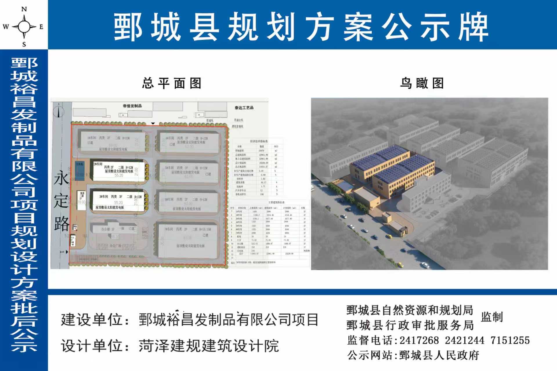 鄄城縣自然資源和規(guī)劃局關(guān)于鄄城裕昌發(fā)制品有限公司項(xiàng)目規(guī)劃設(shè)計(jì)方案批后公示