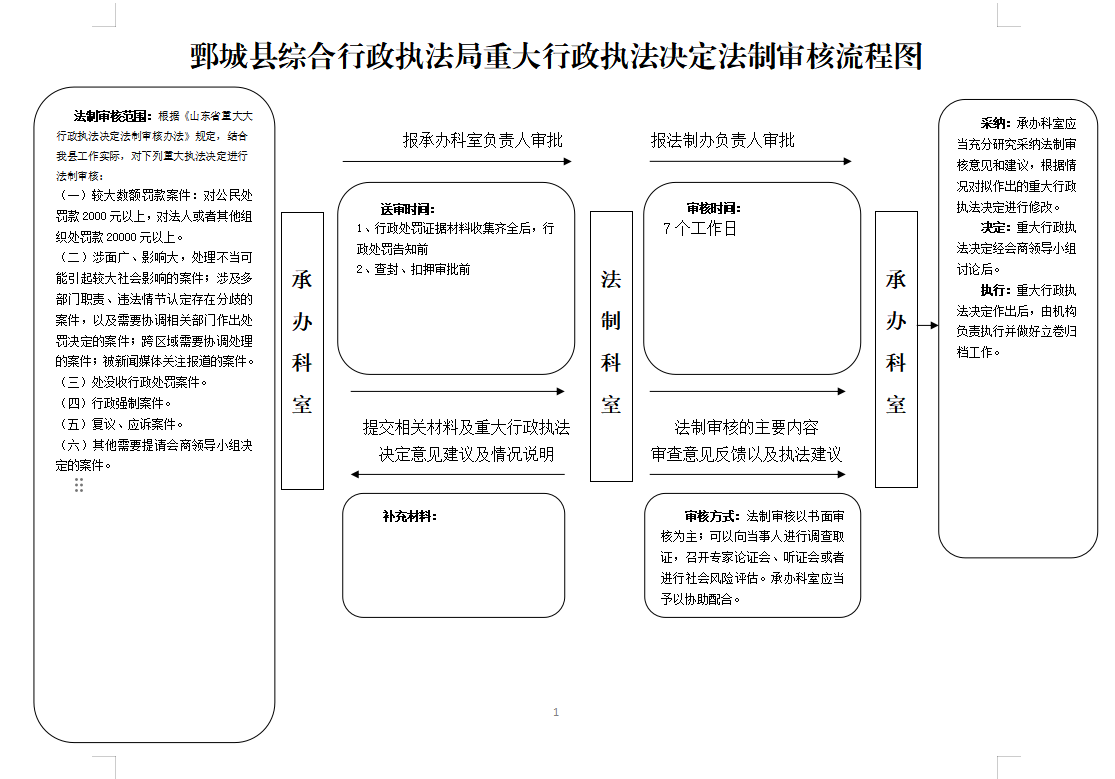 - 標 題:鄄城縣綜合行政執法局重大行政執法決定法制審核流程圖